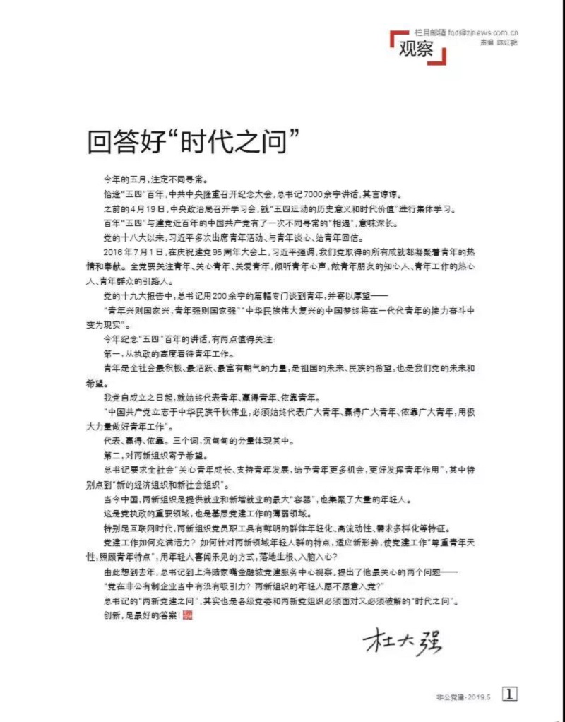 恰逢“五四”百年,中共中央隆重召開紀(jì)念大會,總書記7000余字講話,其言諄諄。
