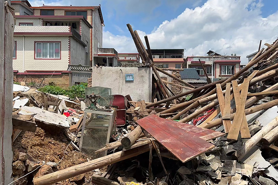 洪澇災(zāi)害侵襲后的羅江村,民房倒塌、殘垣斷壁,村民們正在展開災(zāi)后重建,恢復(fù)生產(chǎn)。有的受災(zāi)群眾住到了鄰居家中,有的群眾搭建了臨時住所。