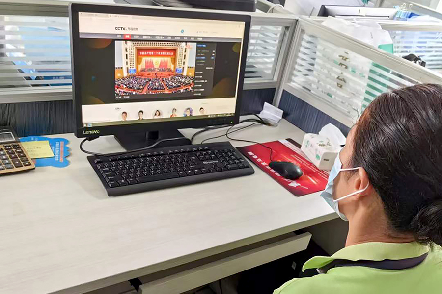 ▲萬禾集團黨總支組織人員觀看二十大開幕會