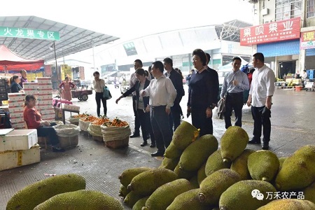 4月19日上午,桂林市政府副市長黃加才在桂林市政府副秘書長馬建鋒、桂林市商務(wù)局局長王昕等領(lǐng)導的陪同下蒞臨五里店果蔬批發(fā)市場,就掃黑除惡工作開展情況進行調(diào)研。萬禾農(nóng)產(chǎn)品有限公司副總經(jīng)理、萬禾市場管理有限公司董事長李小濱率相關(guān)部門負責人進行接待,并對桂林市政府副市長黃加才一行領(lǐng)導的蒞臨表示熱烈的歡迎。