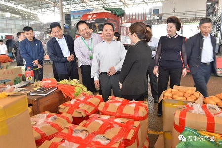 (桂林市政府副市長黃加才一行領(lǐng)導與萬禾副總經(jīng)理李小濱在市場走訪調(diào)查)