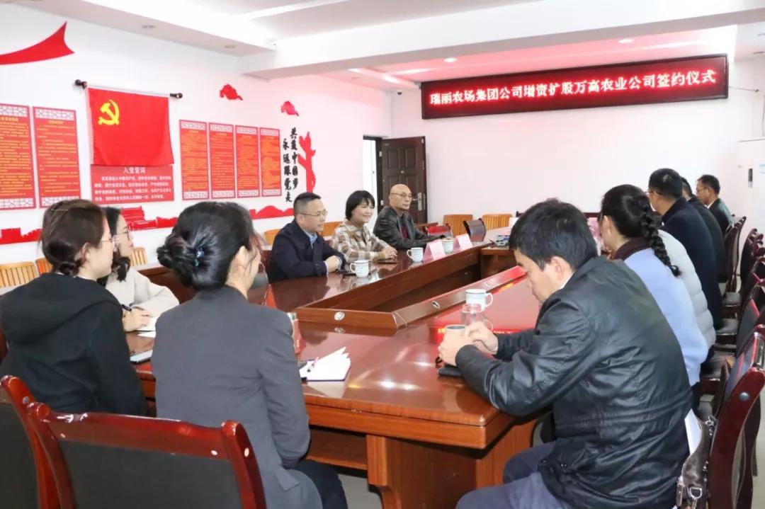 ▲瑞麗農(nóng)場集團(tuán)增資擴(kuò)股萬高農(nóng)業(yè)公司簽約儀式現(xiàn)場