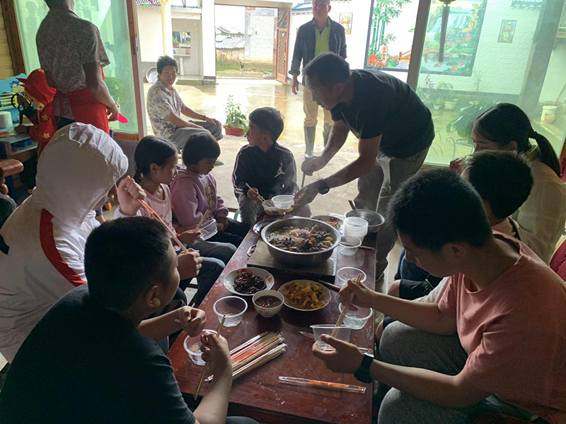 在戶撒學(xué)員們深入貧困村與當(dāng)?shù)匦∨笥鸦ソY(jié)對(duì)子,給小朋友們帶了自己準(zhǔn)備好的小禮物,相互約定好好學(xué)習(xí);家長(zhǎng)們也熱情的邀請(qǐng)學(xué)員們留下來(lái)吃午飯,品嘗到了最正宗的戶撒美食。