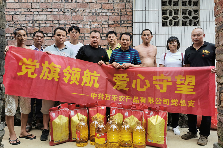 6月26日,中共桂林萬禾農(nóng)產(chǎn)品有限公司總支部委員會(huì)組織黨員同志們,開展了“黨旗領(lǐng)航·愛心守望”慰問活動(dòng)。驅(qū)車前往桂林市臨桂區(qū)五通鎮(zhèn)羅江村,為受災(zāi)較重的羅江村委會(huì)4個(gè)自然村部分受災(zāi)群眾送去了米面、糧油等物資,以實(shí)際行動(dòng)助力鼓勵(lì)受災(zāi)群眾戰(zhàn)勝當(dāng)前困難,早日度過難關(guān)。