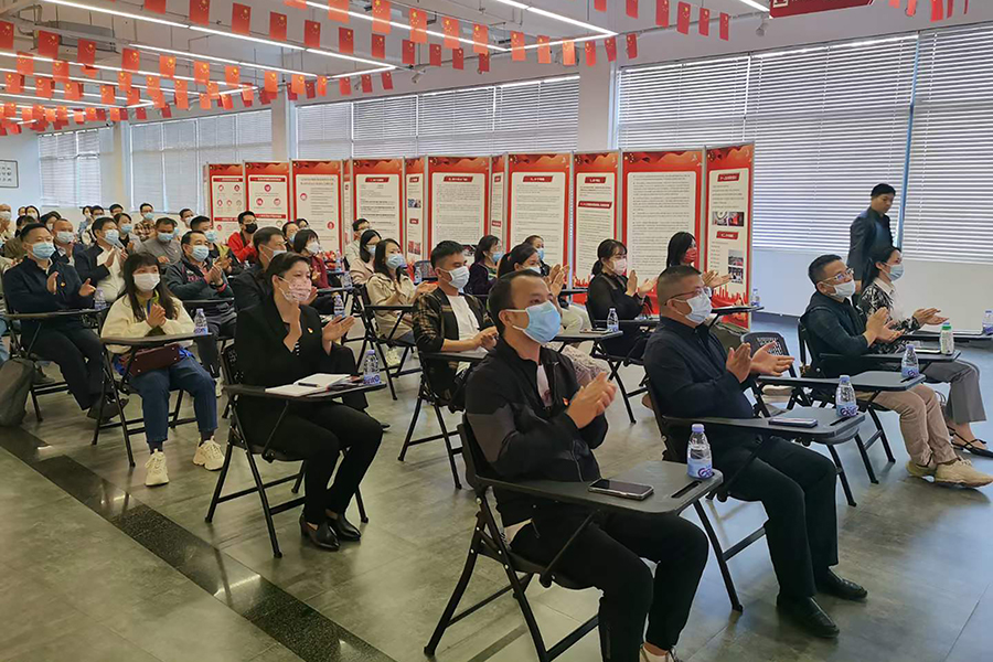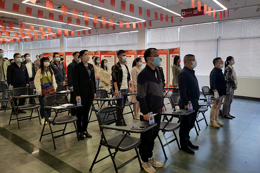 ▲萬禾集團(tuán)黨總支組織人員觀看二十大開幕會(huì)