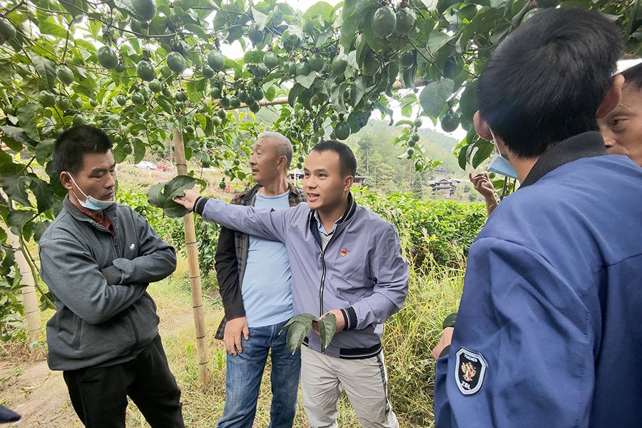 △現(xiàn)場進行百香果種植技術(shù)指導