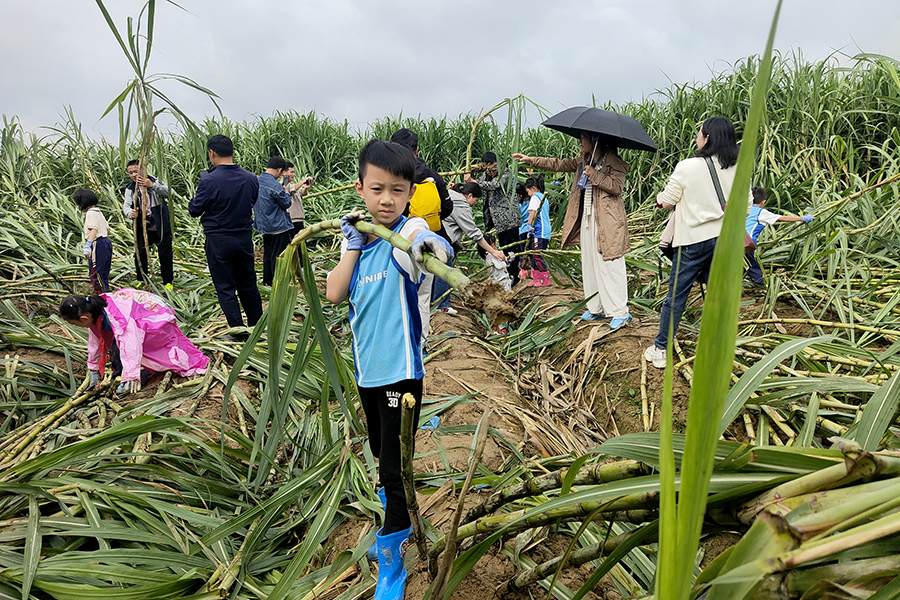 探索自然魅力,體驗(yàn)秋收農(nóng)趣?;顒蝇F(xiàn)場,五通基地種植技術(shù)員首先向師生們介紹了青皮甘蔗的歷史典故以及紅薯、玉米等農(nóng)作物的種植要領(lǐng)和相關(guān)知識。隨后,師生們走進(jìn)五通基地田間地頭,依次參觀了紅薯地、玉米地、青皮甘蔗地,學(xué)習(xí)了解各類農(nóng)作物的生長特征,并在五通基地工作人員的演示指導(dǎo)下,親身體驗(yàn)挖紅薯、摘玉米、砍甘蔗、榨甘蔗汁等勞作過程,雖然天下著雨,但絲毫不影響師生們參與勞動體驗(yàn)的心情。隨著工作人員將收獲的紅薯和玉米蒸煮成一鍋熱氣騰騰的美食端上餐桌,搭配上一杯杯現(xiàn)榨鮮甜甘蔗汁,師生們現(xiàn)場品嘗到自己親手采摘的勞動果實(shí),他們紛紛點(diǎn)贊道:“真是太好吃了,感覺就是人間美味”。通過參加本次活動讓學(xué)生們進(jìn)一步感受到秋實(shí)不負(fù)春華,收獲不負(fù)耕耘的深刻含義。
