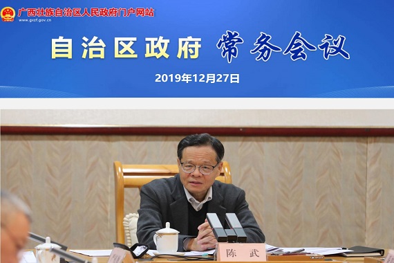 12月27日,自治區(qū)主席陳武主持召開自治區(qū)十三屆人民政府第47次常務(wù)會(huì)議,討論《政府工作報(bào)告(送審稿)》;部署元旦春節(jié)期間生豬恢復(fù)生產(chǎn)和保供穩(wěn)價(jià)工作;研究促進(jìn)廣西茶產(chǎn)業(yè)高質(zhì)量發(fā)展政策措施;確定2019年第四批創(chuàng)新驅(qū)動(dòng)發(fā)展專項(xiàng)資金立項(xiàng)資助項(xiàng)目;審議通過《廣西壯族自治區(qū)最低生活保障辦法》。