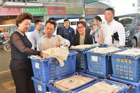 (桂林市政府副市長黃加才一行領(lǐng)導與萬禾副總經(jīng)理李小濱在市場走訪調(diào)查)