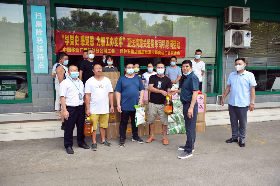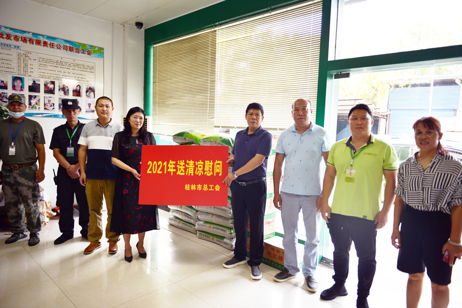 今年8月,由桂林市總工會(huì)開展“夏日送清涼”慰問活動(dòng),為五里店果蔬批發(fā)市場(chǎng)工會(huì)聯(lián)合會(huì)會(huì)員和貨車司機(jī)送來綠豆等防暑、防高溫暖心物品。