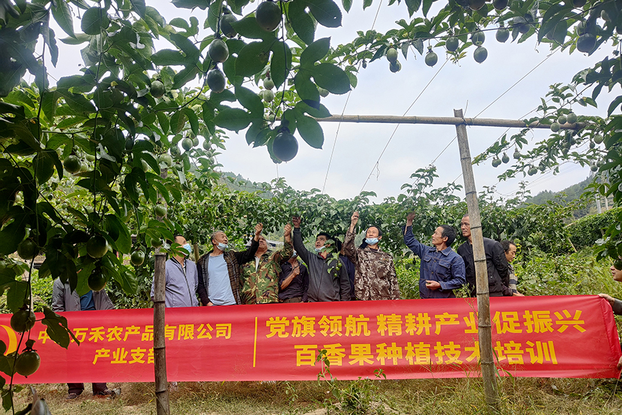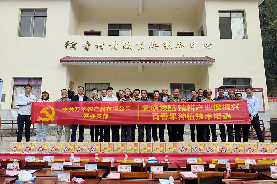 2021年以來,萬禾集團黨總支、產(chǎn)業(yè)部支部與猴背村黨支部通過建立“企業(yè)+基地+合作社+農(nóng)戶”發(fā)展模式,依托種植技術(shù)、百香果產(chǎn)業(yè)優(yōu)勢,助力鄉(xiāng)村產(chǎn)業(yè)興旺。