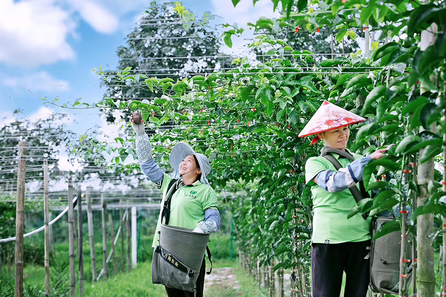 這十年,萬(wàn)禾集團(tuán)積極響應(yīng)國(guó)家戰(zhàn)略部署,在完成自身成熟產(chǎn)業(yè)發(fā)展經(jīng)營(yíng)模式的構(gòu)建后,將多年積攢的行業(yè)勢(shì)能和實(shí)踐經(jīng)驗(yàn)轉(zhuǎn)化為產(chǎn)業(yè)動(dòng)能,整合創(chuàng)新從生產(chǎn)到銷售的全產(chǎn)業(yè)鏈運(yùn)營(yíng)模式。多年來(lái),萬(wàn)禾集團(tuán)共舉辦各類技術(shù)培訓(xùn)班120期,累計(jì)培訓(xùn)人員一萬(wàn)多人次,帶領(lǐng)農(nóng)戶發(fā)展輻射能力強(qiáng)、技術(shù)和生產(chǎn)組織模式先進(jìn)、示范帶動(dòng)作用突出的蔬菜、百香果、茶葉、青皮甘蔗等特色產(chǎn)業(yè)。在廣西龍勝、臨桂、靈川、興安、資源和云南文山、芒市、梁河、瑞麗、隴川等10個(gè)縣市構(gòu)建“公司+基地+合作社+農(nóng)戶”發(fā)展模式,推廣種植數(shù)萬(wàn)畝百香果,產(chǎn)業(yè)惠農(nóng)覆蓋人群逾10萬(wàn)人。