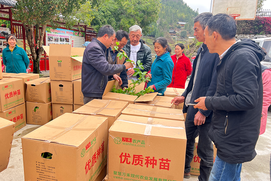 ▲現(xiàn)場發(fā)放優(yōu)質(zhì)百香果種苗