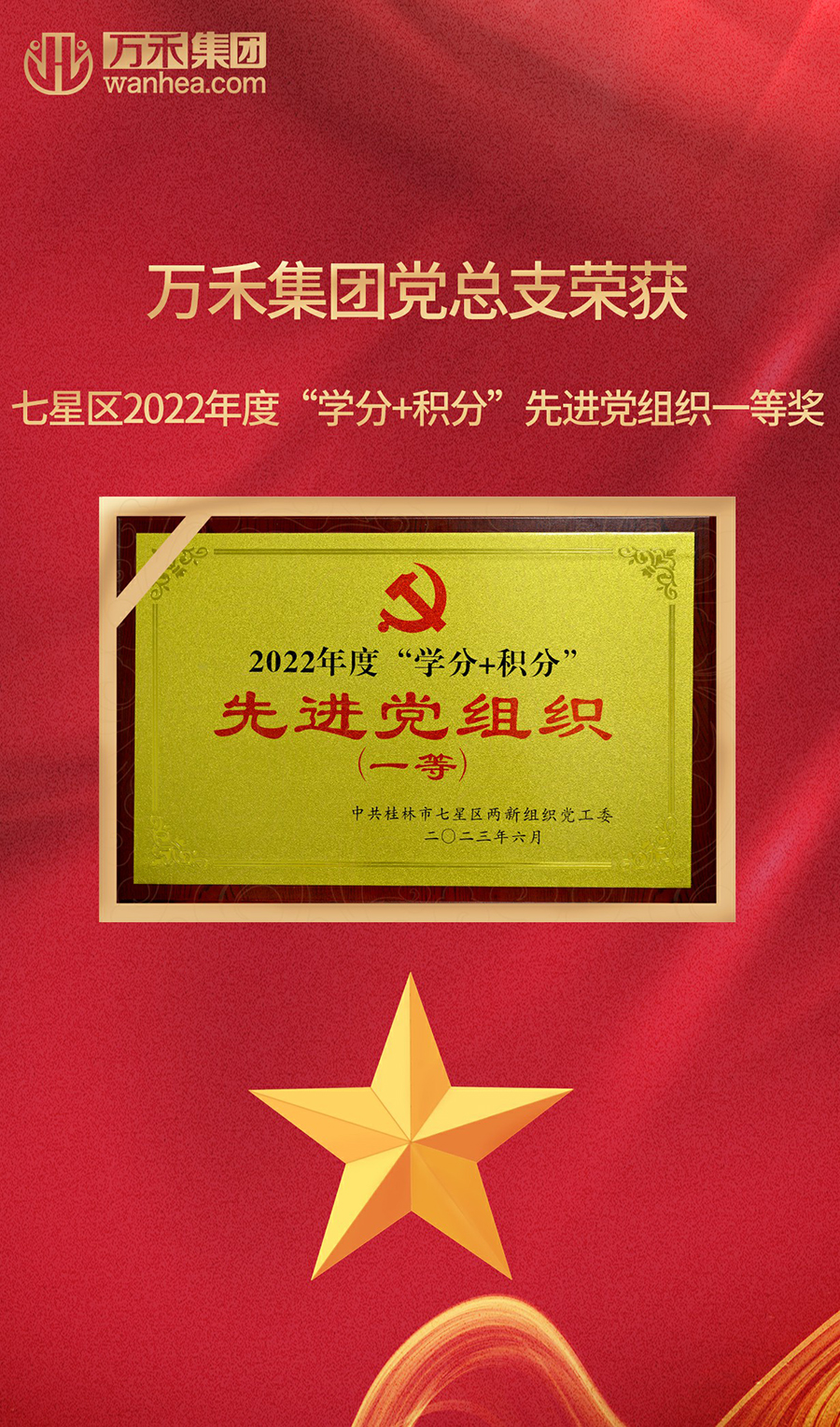 6月28日,在七星區(qū)兩新組織黨工委開展的“不忘初心跟黨走 昂揚(yáng)奮進(jìn)新征程”迎“七一”活動(dòng)中,萬(wàn)禾集團(tuán)黨總支獲授2022年度桂林市兩新組織黨建工作示范點(diǎn)榮譽(yù)稱號(hào)和七星區(qū)兩新組織黨工委2022年度“學(xué)分+積分”一等獎(jiǎng)!