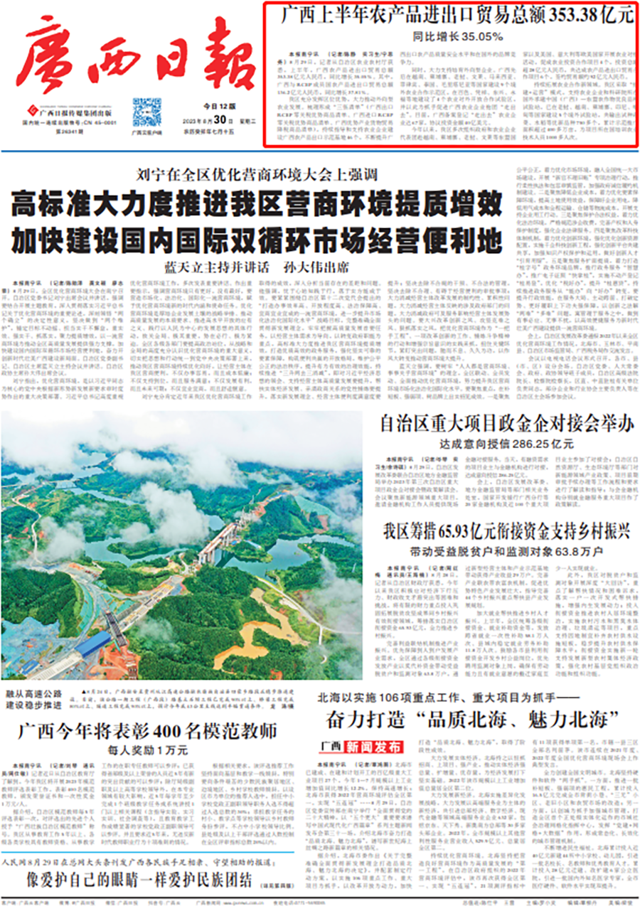 8月29日,記者從自治區(qū)農(nóng)業(yè)農(nóng)村廳獲悉,上半年,廣西農(nóng)產(chǎn)品進(jìn)出口貿(mào)易總額353.38億元人民幣,同比增長35.05%。其中,廣西與RCEP成員國農(nóng)產(chǎn)品進(jìn)出口貿(mào)易總額136.2億元人民幣,同比增長37.81%。