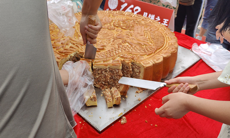 活動現(xiàn)場,萬禾集團五里店市場支部聯(lián)合黃家月等月餅品牌商組織開展“168斤月餅王”嘗鮮為主題的系列活動,支部黨員干部、市場經(jīng)營戶代表以及市場各職能部門員工參加活動,與前來桂林五里店果蔬批發(fā)市場購物的市民同慶中秋國慶佳節(jié)來臨,共話團圓美好。